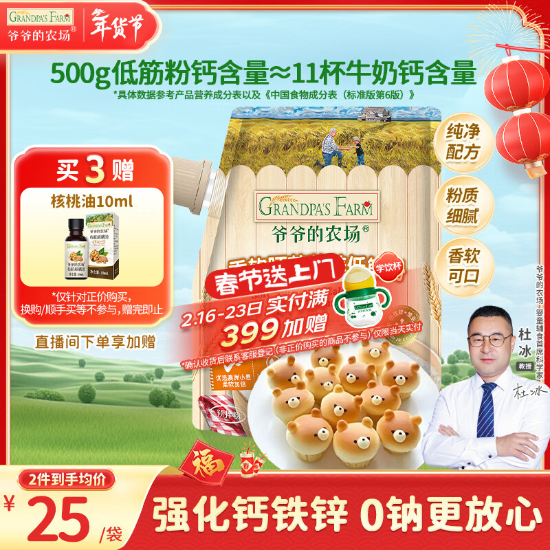 爷爷的农场香软胚芽营养低筋粉500g 儿童小麦面粉蛋糕松饼烘焙宝宝自制辅食