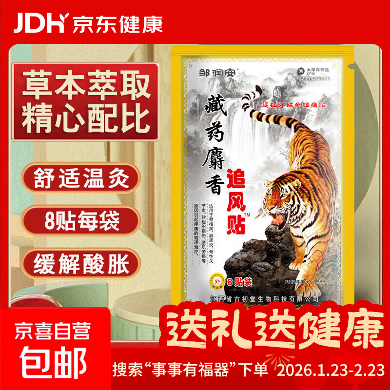 麝香追风贴膏颈椎贴腰间盘坐骨足跟肩周膝盖滑膜关节贴膏贴 1盒8贴【体验装】