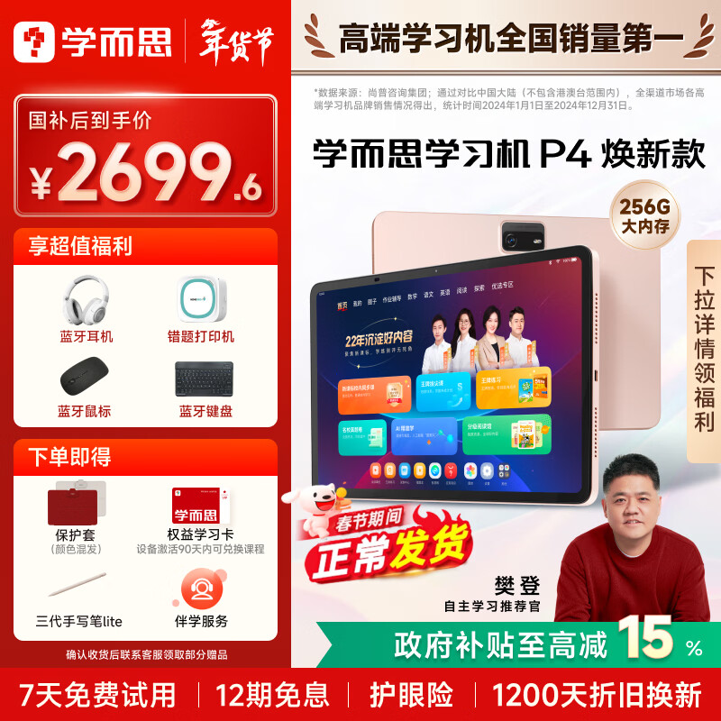 学而思学习机P4【国家补贴85折】AI学习机 全年龄段 校内同步课 护眼 九章大模型 12.1英寸 6+6+256GB