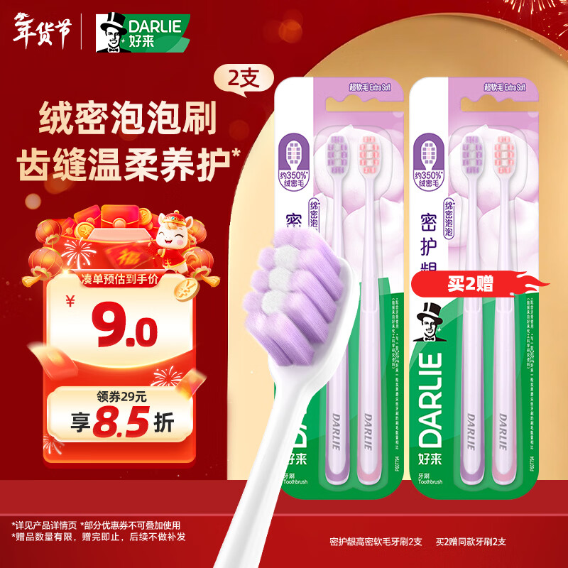 好来(DARLIE)(原黑人)密护龈高密软毛牙刷抗敏护龈 减少出血2支装新老包装随机