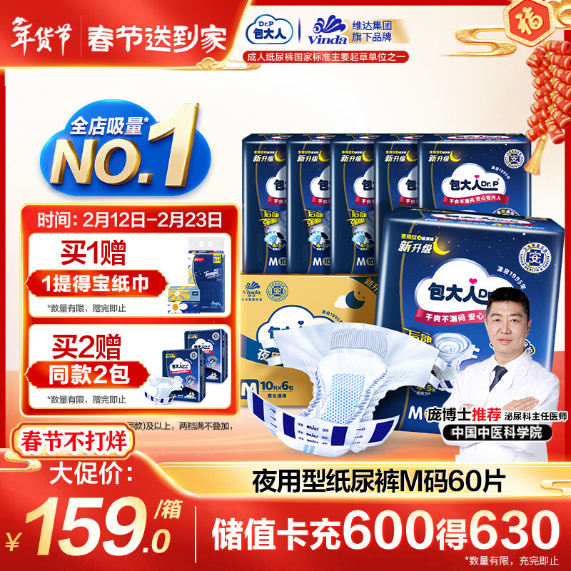 包大人(Dr.P)夜用型成人纸尿裤M60片(腰围:70cm-110cm)老年人产妇尿不湿