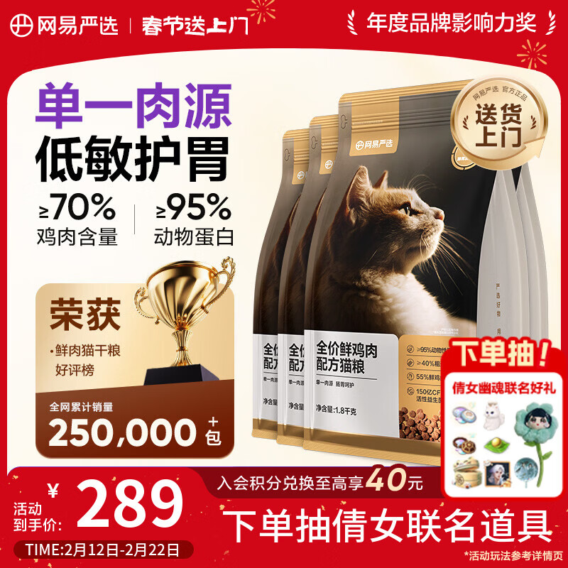 网易严选全价鲜鸡肉猫粮 成幼猫粮单一肉源无谷益生菌低敏护肠胃增肌7.2kg