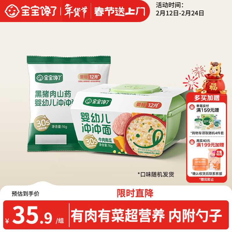 宝宝馋了冲冲面16g*2婴幼儿家庭辅食餐带碗勺出行装家庭装口味随机