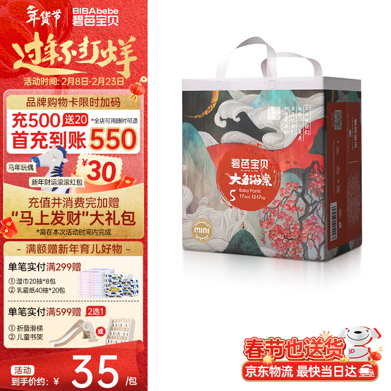 碧芭宝贝拉拉裤大鱼海棠成长裤婴儿尿不湿宝宝训练裤夏季凉爽尿裤 mini装XL码-17片(12~17kg)