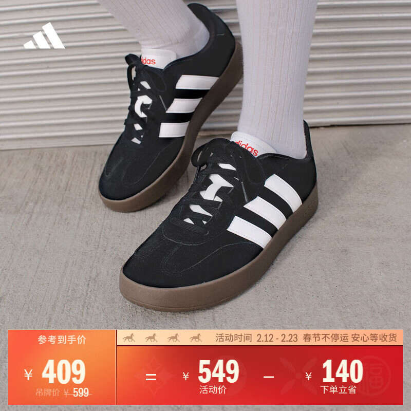 adidas「T头鞋」BARREDA休闲板鞋德训鞋男女阿迪达斯官方轻运动 黑色/白色/树脂黄 41
