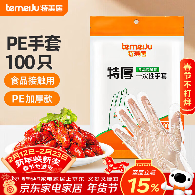 特美居(temeiju)一次性手套食品级100只特厚透明塑料加厚厨房洗碗餐饮