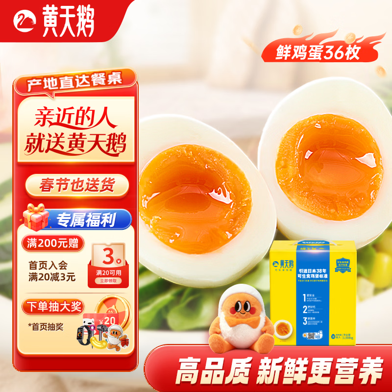 黄天鹅可生食鲜鸡蛋36枚礼盒装3.8斤源头直发礼品送礼年货春节实用高端 36枚