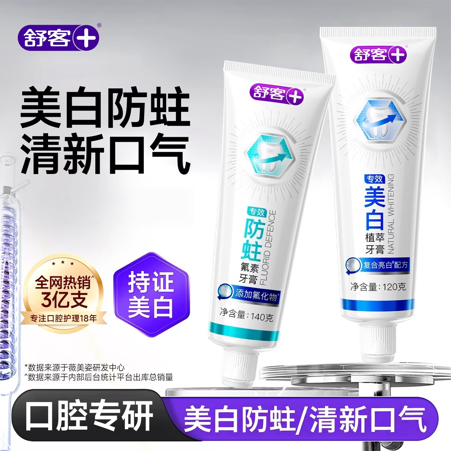 舒客氨基酸美白牙膏亮白含氟护龈清新口气家用官方旗舰店正品 【2支装】美白120g+防蛀140g延发