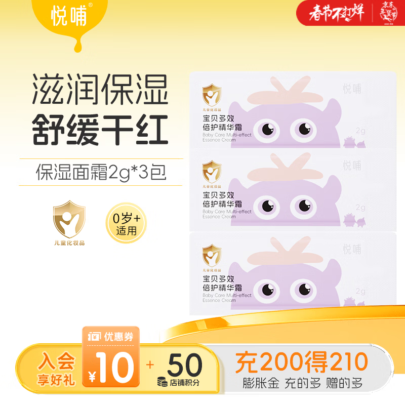 悦哺儿童面霜婴儿滋润保湿润肤霜 宝宝干燥舒缓补水护肤霜新生儿可用 面霜试用装 2gx3包