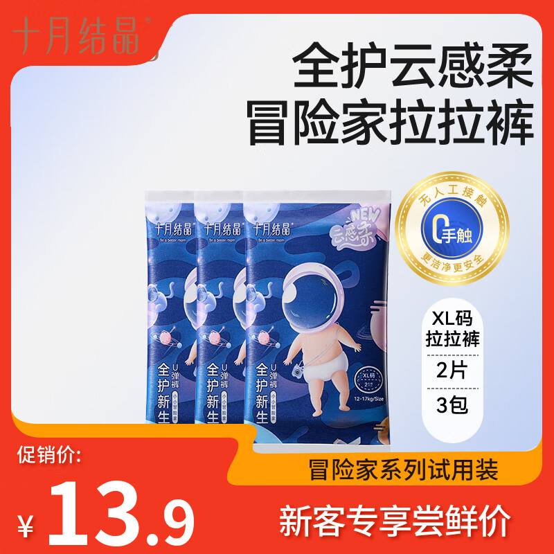 十月结晶小小冒险家拉拉裤超薄干爽大码尿不湿试用装XL6片