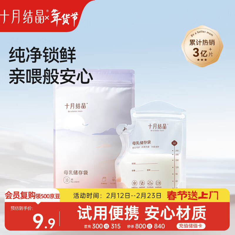 十月结晶储奶袋一次性母乳保鲜袋双层封口存奶袋200ml 10片/袋 随机发货