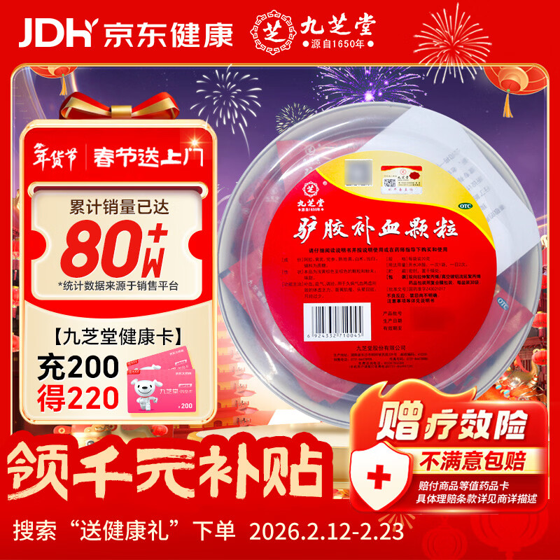 九芝堂驴胶补血颗粒20g*30袋补气血京东自营OTC非处方药阿胶养血益气调月经量少面黄气虚乏力头晕失眠