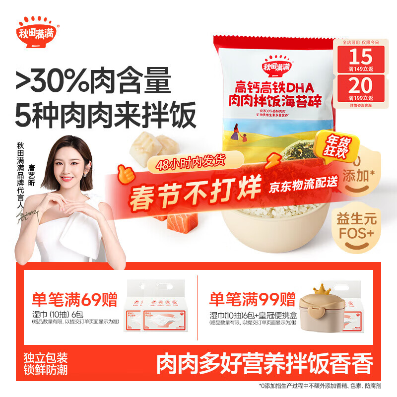 秋田满满 高钙高铁DHA海苔碎9.5g(试用)