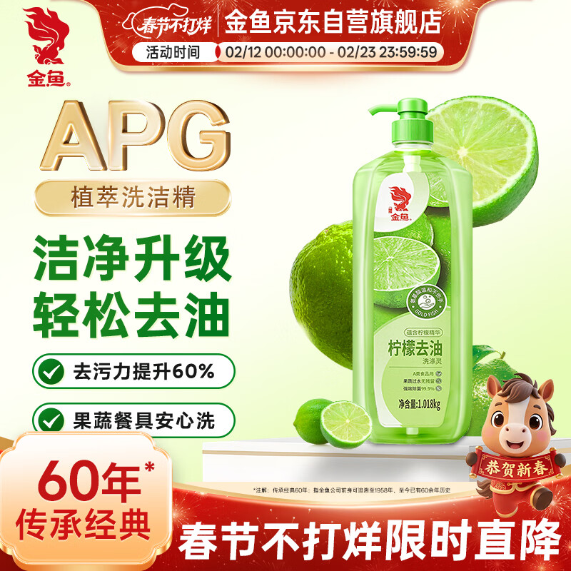 金鱼柠檬APG洗洁精1.018kg A类果蔬奶瓶洗洁剂洗碗液洗涤灵去油除味