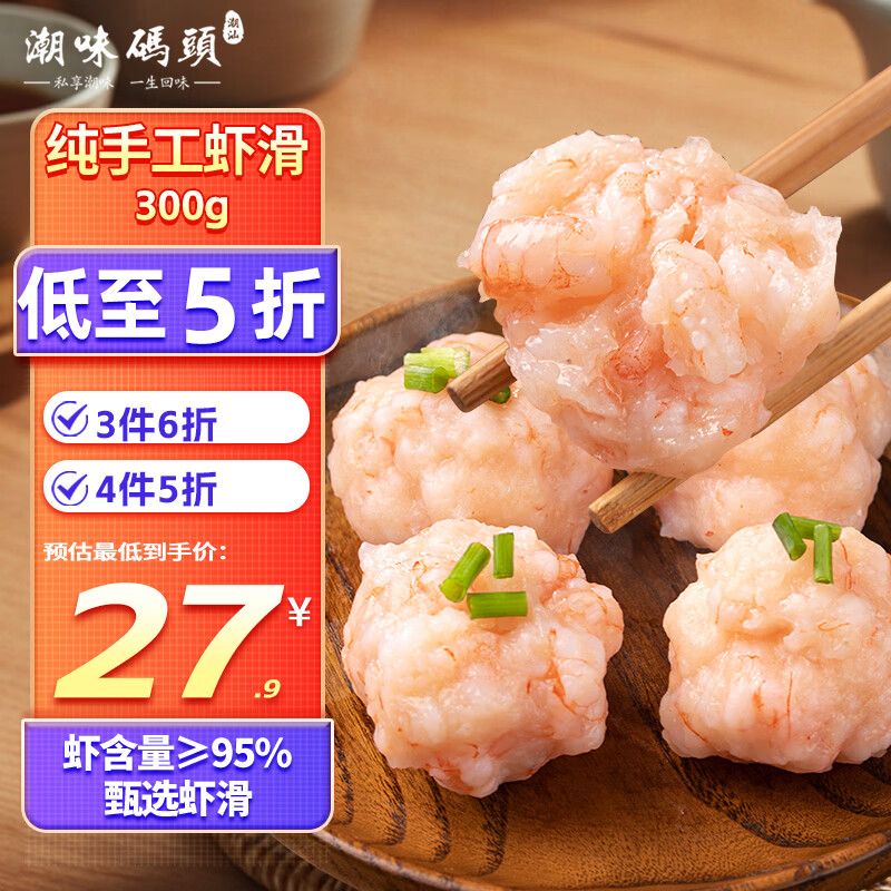 潮味码头虾滑300g虾含量≥95%生鲜冷冻速冻丸滑涮火锅关东煮火锅食材