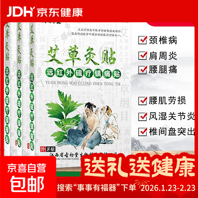 艾草灸远红外磁疗8贴装腰椎贴颈椎贴艾热贴艾叶颈肩关节膝盖贴 艾草灸贴8贴*1盒
