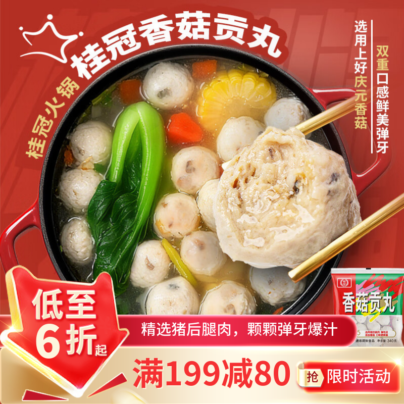 桂冠 香菇贡丸 340g 冷冻 猪后腿肉 贡丸 火锅麻辣烫关东煮食材