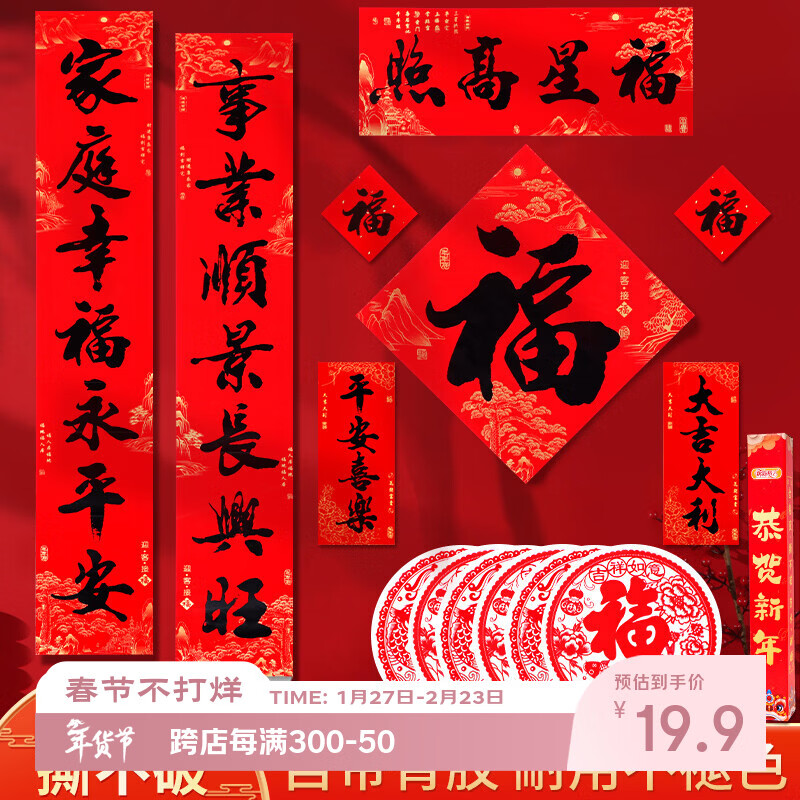 新新精艺新年对联礼盒2026年马年新款春节家用过年春联自粘门联12件套110#