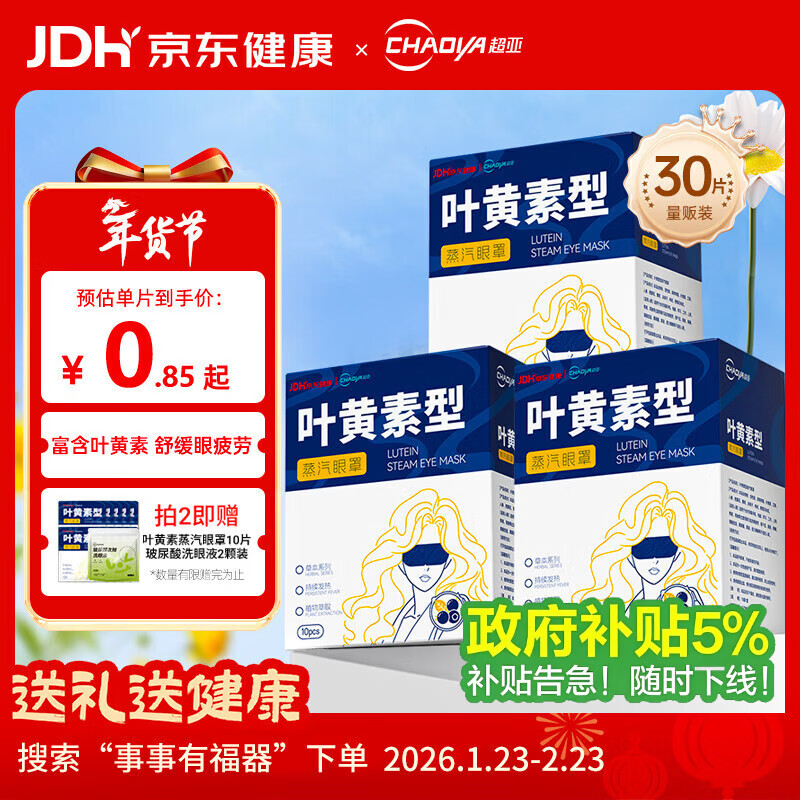 超亚叶黄素蒸汽眼罩热敷缓解眼疲劳男女热敷贴学生润目睡眠30片年货节