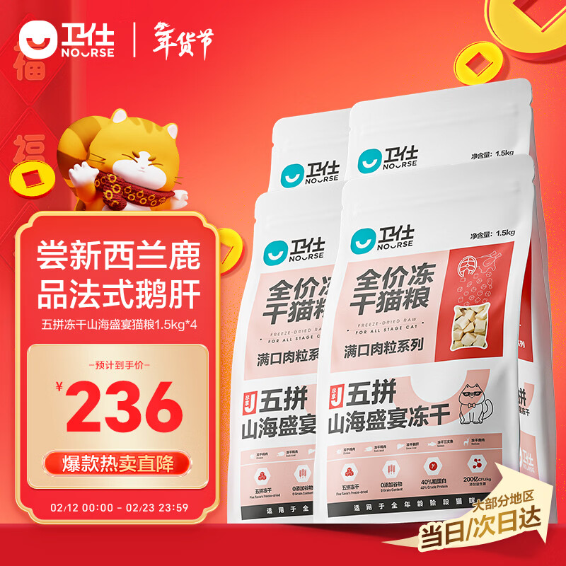 卫仕 五拼冻干全价全阶段猫粮 猫干粮 成猫幼猫高蛋白粮 山海盛宴 6kg