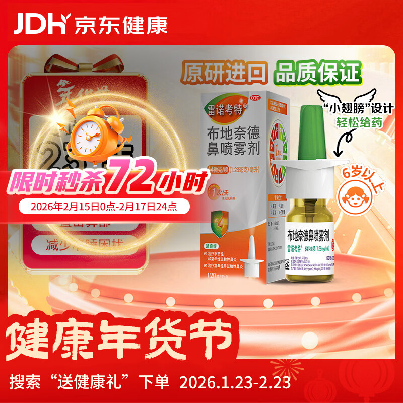 【进口原研药】雷诺考特布地奈德鼻喷雾剂64μg*120喷过敏性鼻炎喷剂专用药非氯雷他定片雾化吸入混悬液儿童