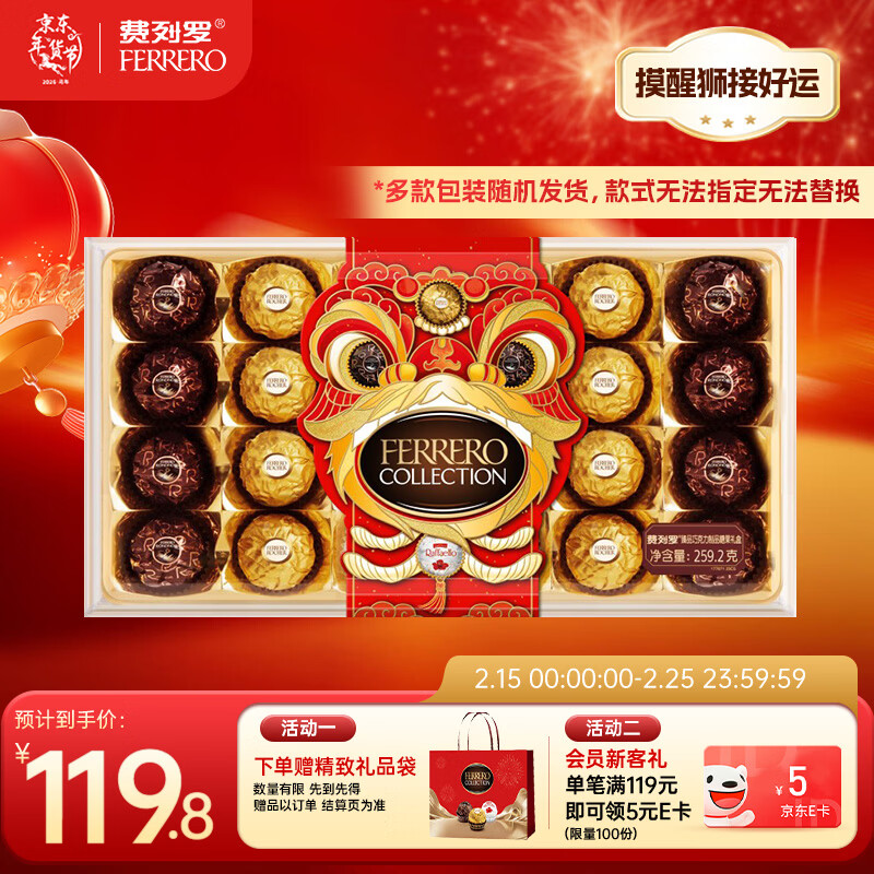 费列罗 榛果巧克力礼盒 3种口味24粒259.2g 零食 糖果 年货礼盒