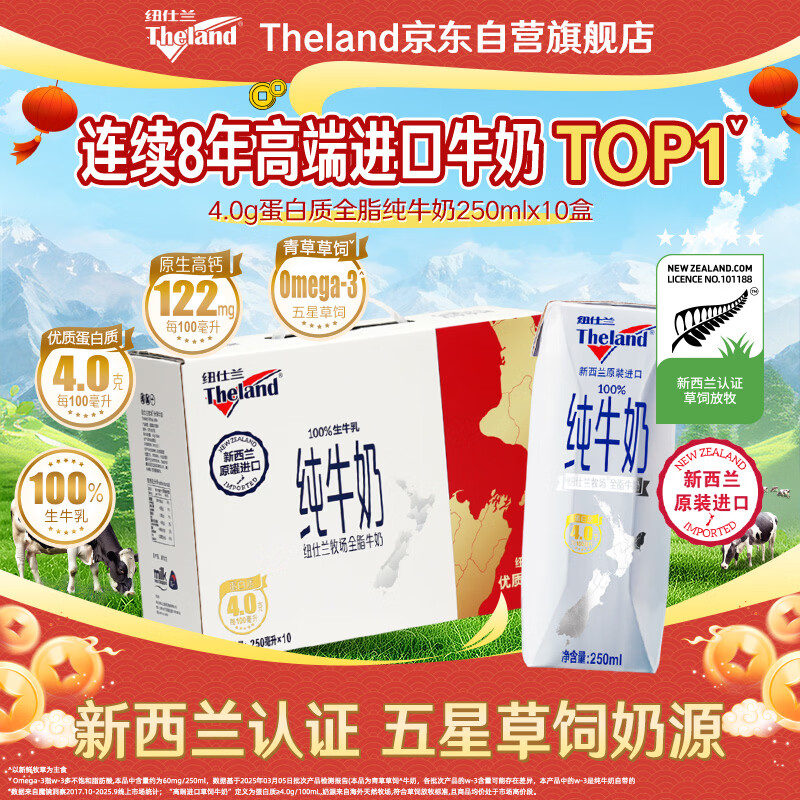 纽仕兰新西兰草饲4.0g蛋白质全脂纯牛奶礼盒 250ml*10盒 新年送礼