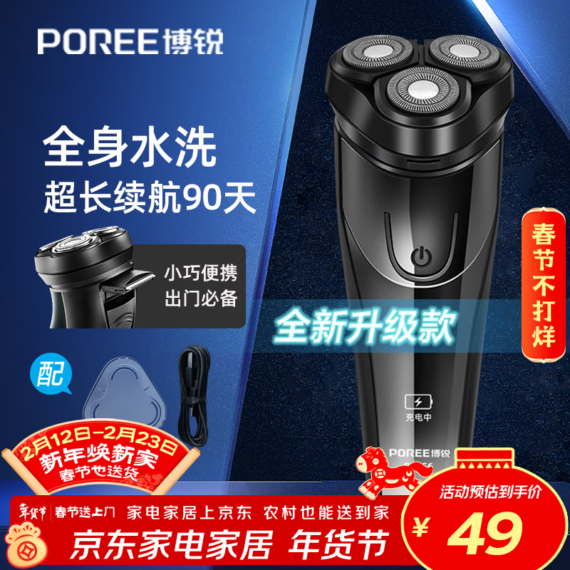 博锐飞科博锐剃须刀电动刮胡刀男士充电式胡须刀便携车载须刨【京东独家】生日礼物送男友推荐 PS156
