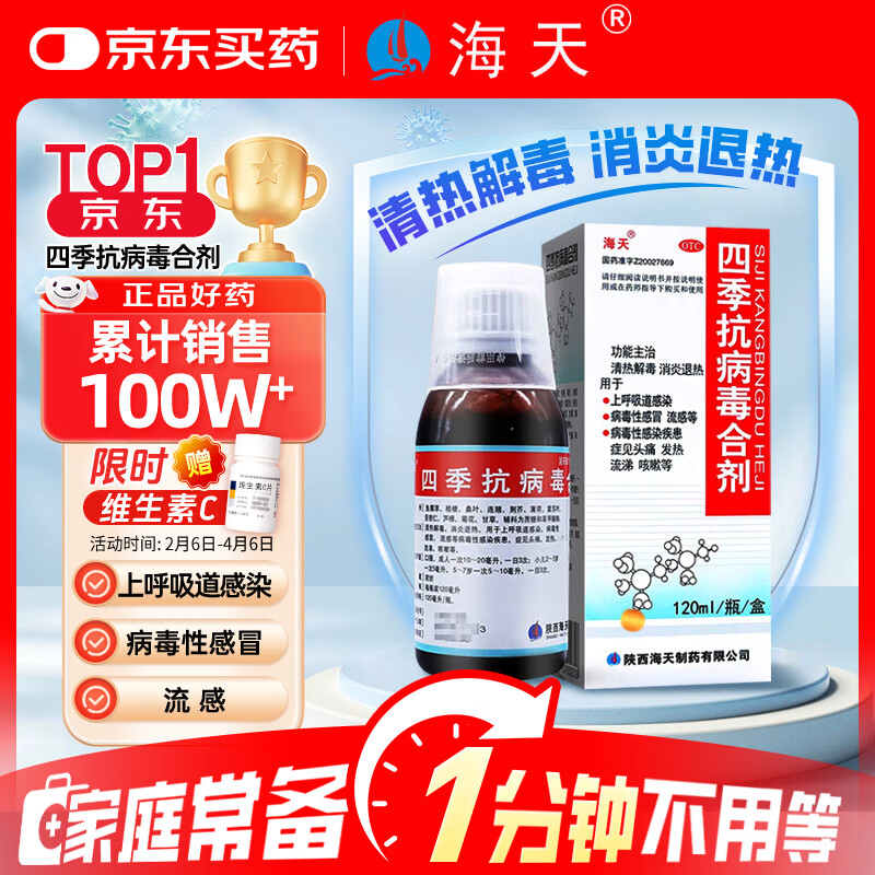 海天四季抗病毒合剂口服液120ml 感冒咳嗽 风寒风热感冒均治 清热解毒 消炎退烧药 抗病毒用药 儿童用量明确