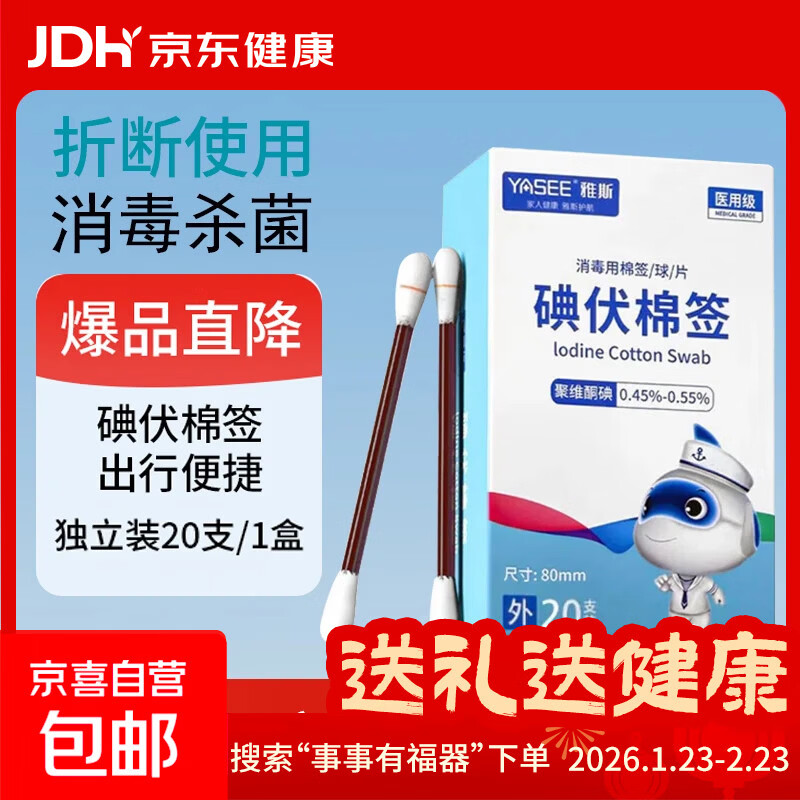 医用碘伏棉签碘伏消毒液棉棒新生婴儿肚脐清洁痘痘皮肤消毒无酒精 【医用级碘伏棉签】1盒20支