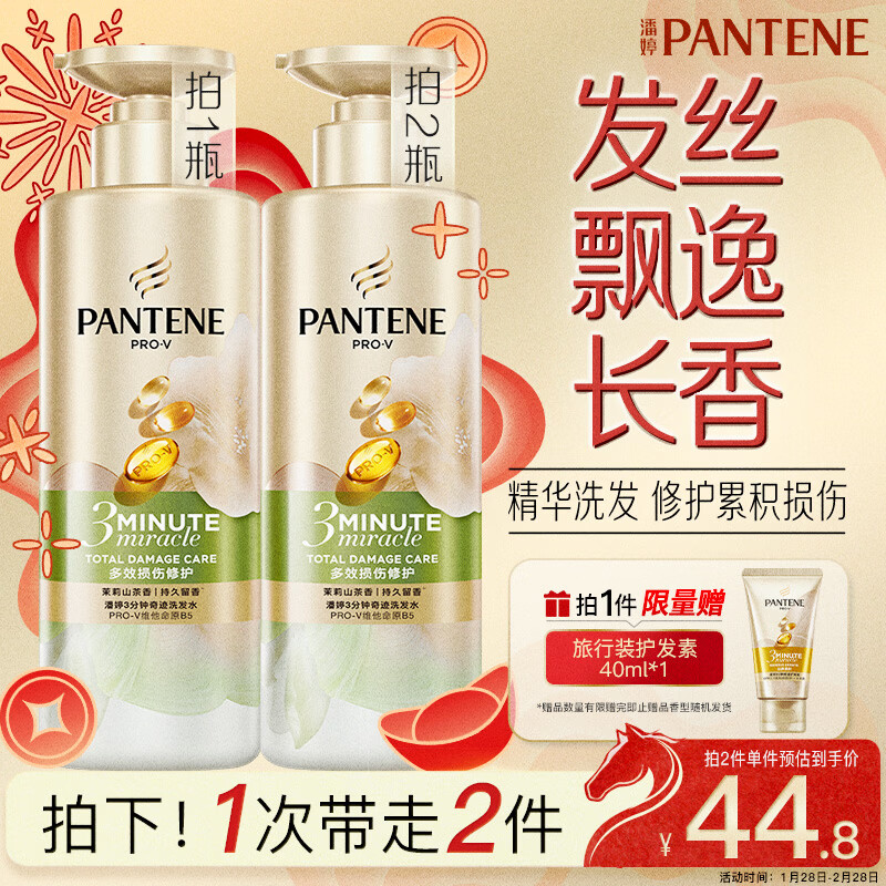 潘婷三分钟奇迹洗发水金榜茉莉山茶留香470g洗头膏洗发露京东自营柔顺
