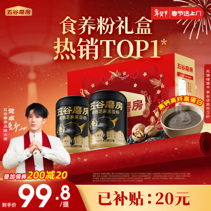 五谷磨房【鹭卓同款】食养礼低GI黑芝麻糊核桃芝麻粉年货礼盒1092g经典版