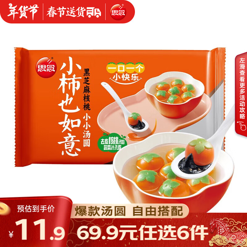 思念柿柿如意汤圆黑芝麻汤圆 招财进宝汤圆元宵汤圆速冻早餐点心 小柿也如意240g