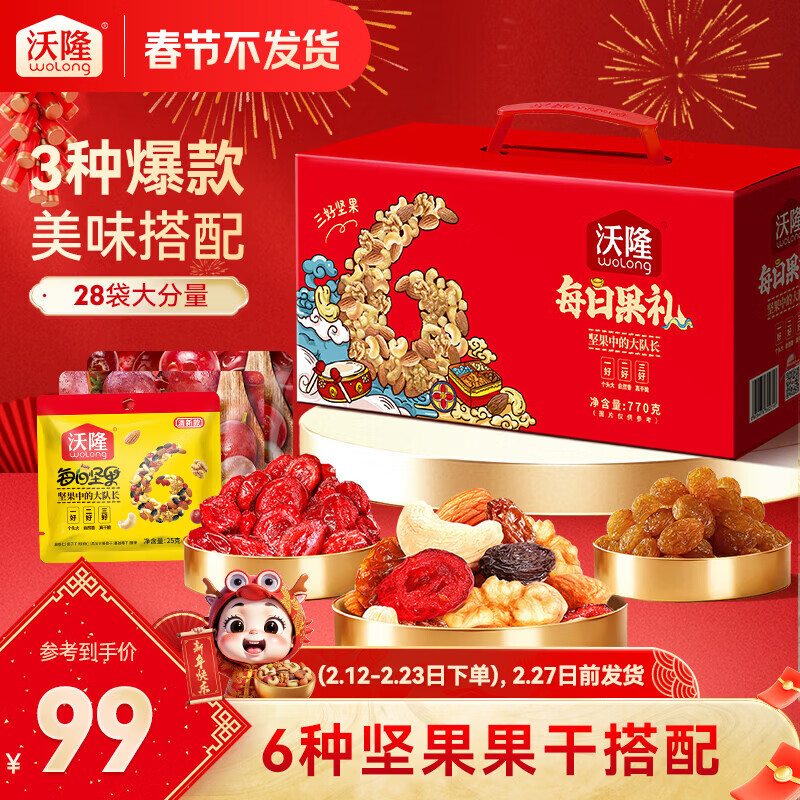 沃隆每日坚果770g坚果礼盒混合干果营养零食大礼包腰果榛子核桃仁 【28袋大份量】每日果礼红盒770g