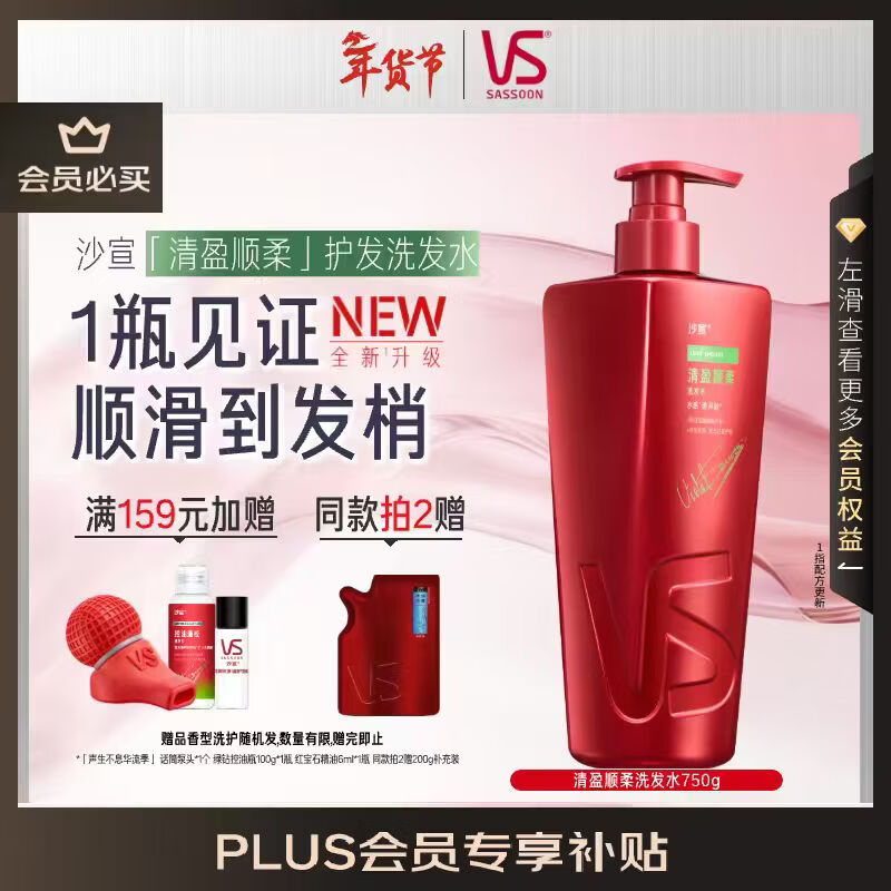 沙宣清盈顺柔洗发水750g大红瓶洗发露【单依纯同款】控油蓬松男女