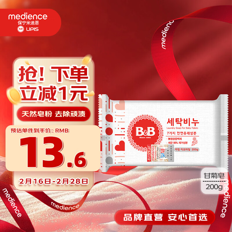 保宁(B&B)婴幼儿洗衣皂宝宝专用尿布肥皂新生儿内衣内裤留香去污洗护皂200g