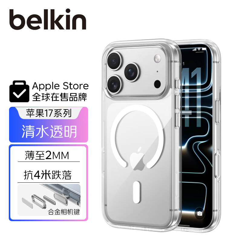 贝尔金(BELKIN)适用iphone17promax手机壳 苹果17promax全包磁吸手机壳 透明手机保护套
