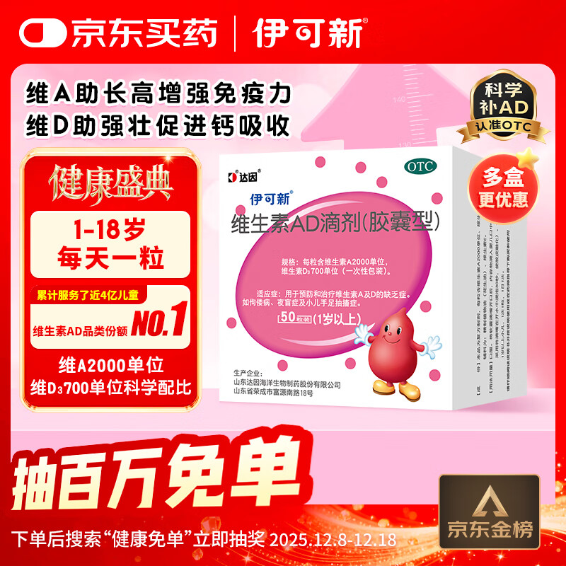 伊可新维生素AD滴剂(胶囊型)50粒1岁以上 幼儿 儿童维生素ad滴剂 ad伊可新ad 维生素a助长高