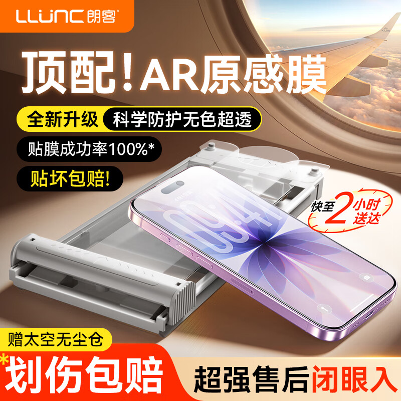 朗客【AR增透抗反光+0.1超薄】适用iPhone17/16pro钢化膜苹果17/16Pro手机膜高清全屏防尘抗指纹无尘仓