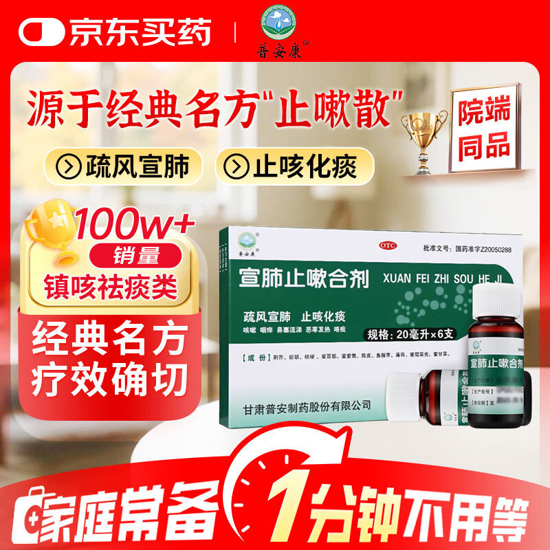 普安康 宣肺止嗽合剂 20ml*6支 疏风宣肺 止咳化痰 咳嗽药 咽痛咽痒 咳痰 感冒咳嗽 新冠指南用药