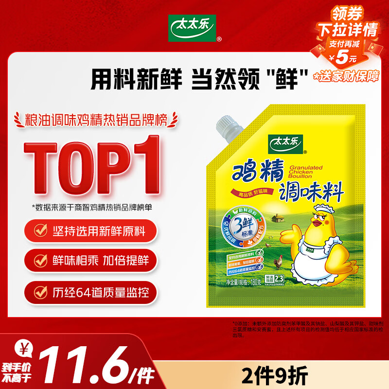 太太乐 鸡精 三鲜标准 加倍提鲜 180g(加嘴装)