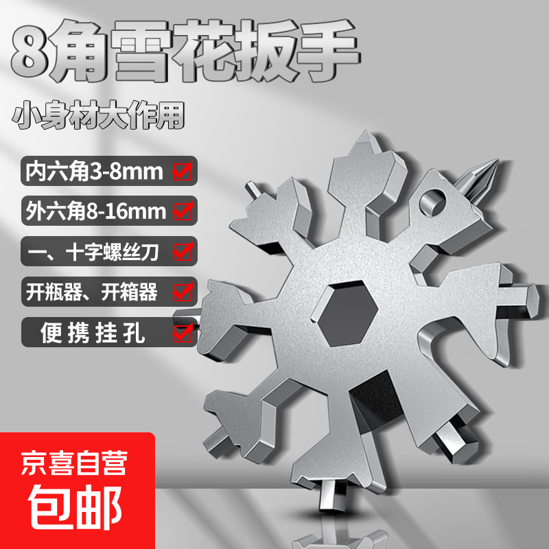 8角雪花扳手 多功能便携式雪花扳手19合一便携扳手 edc随身好物多功能扳手 8角雪花扳手