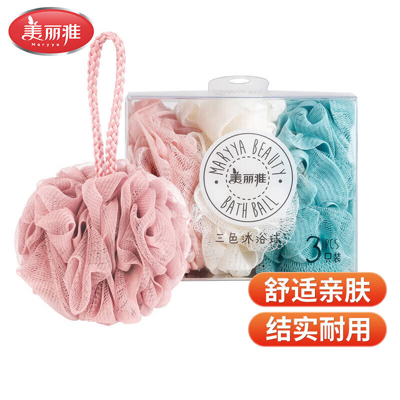 美丽雅沐浴球浴花【3只装】泡澡搓澡神器不散男士女起泡网洗浴球澡花