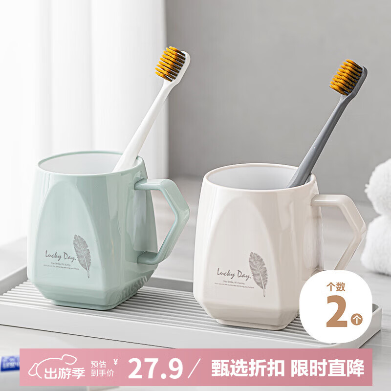 Daisy Leaf 漱口杯高颜值情侣牙刷杯刷牙杯洗漱杯成人儿童牙缸 蓝白2个装