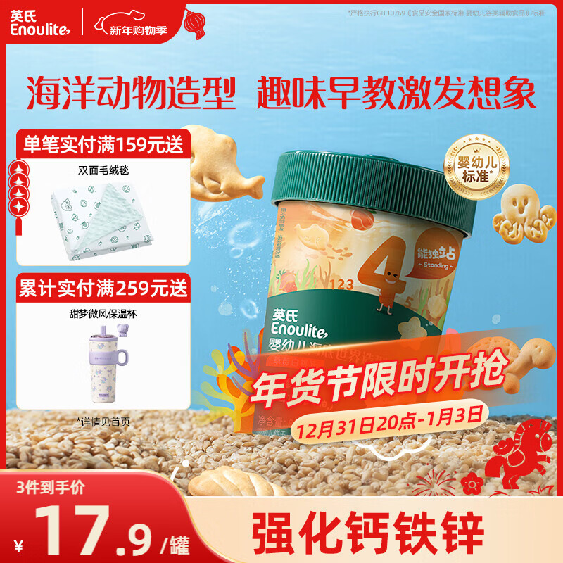 英氏(Engnice)婴幼儿海底世界饼干草莓白桃味 婴儿零食辅食营养饼干宝宝零食85g