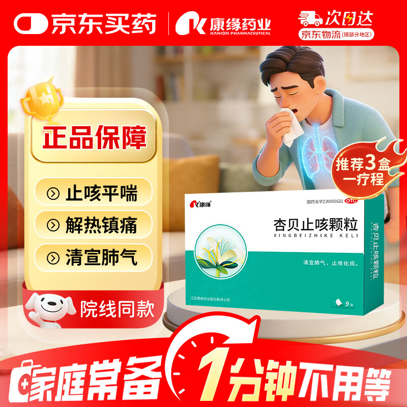 康缘 杏贝止咳颗粒9袋止咳祛痰发热恶寒咽痛肺炎流感支气管炎口干咽炎 4g*9袋 1盒装