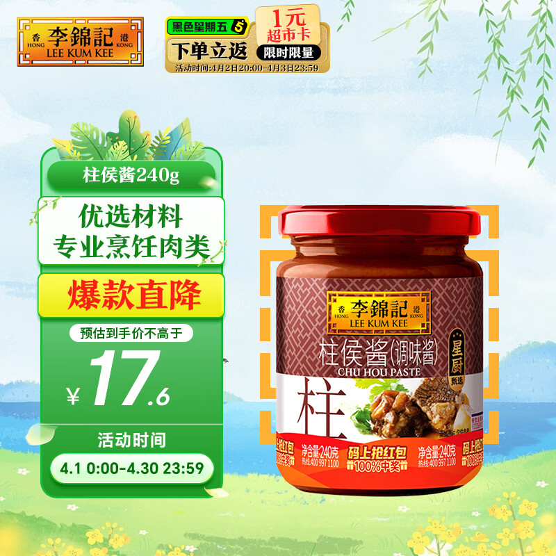 李锦记 柱侯酱240g 国宝级大师推荐 炖肉烧烤火锅底料蘸料 中式酱料