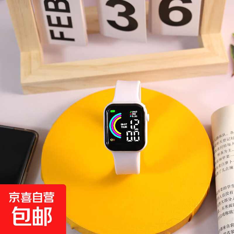 智能手表配件休闲运动电子手环手表夜光防水情侣男女学儿童手表硅胶手环 【白色旗舰款】高端白