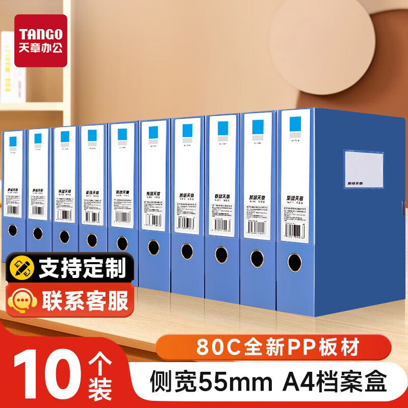 天章 (TANGO)10只装a4档案盒55mm文件盒资料盒人事塑料档案夹财务合同收纳盒办公用品高品质pp材质厚80c-(0162)