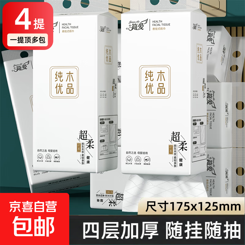 简爱挂式大包抽纸悬挂式家用纸巾壁挂式餐巾纸平板卫生纸擦手纸抽 够用半年4000张【4大提】